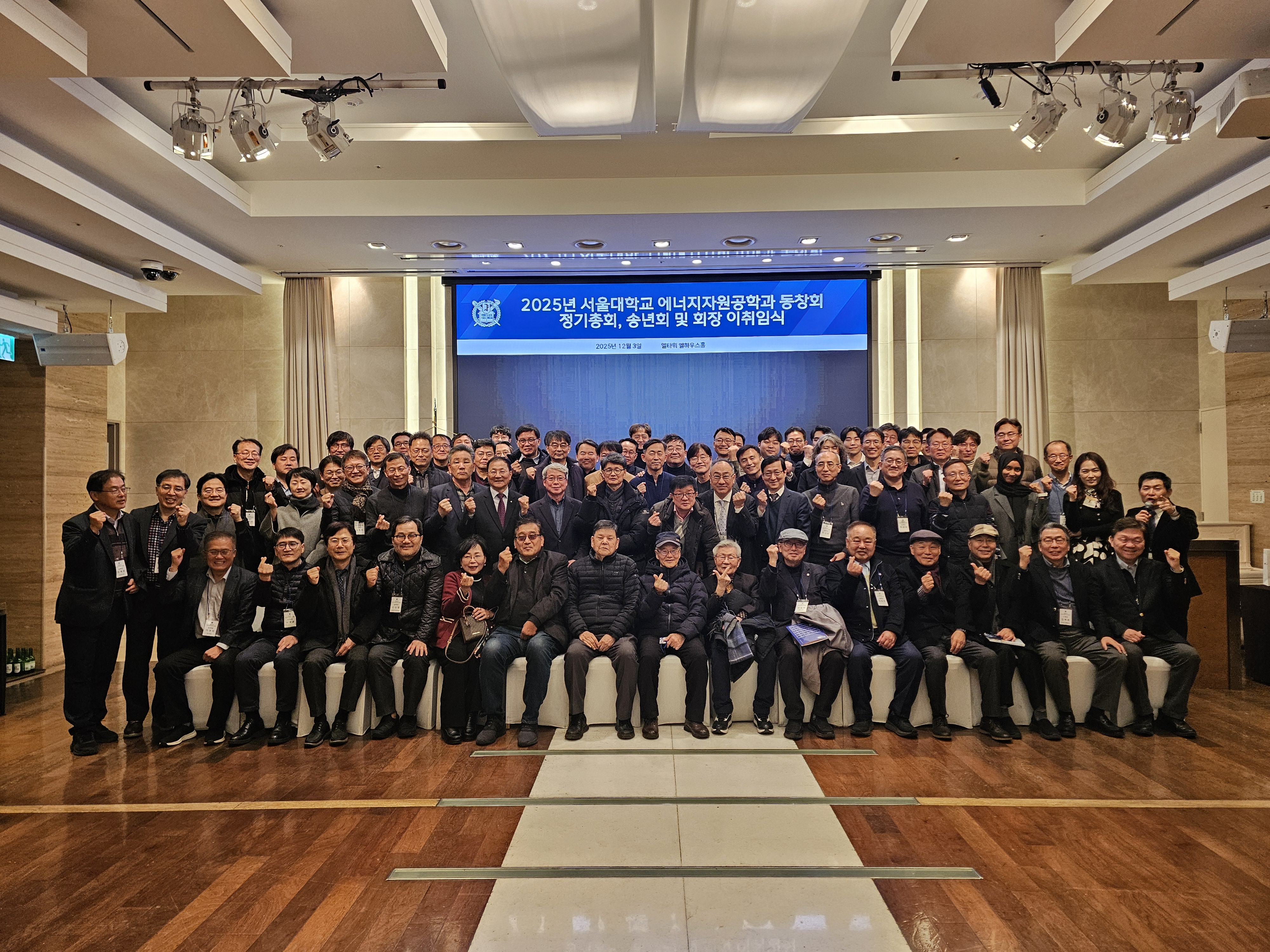 - 일시 : 2025년 12월 3일(수) 저녁 6시~9시 - 엘타워 8층 엘하우스홀(양재역 9번출구) - 세부일정 : * 6시~ 접수 및 입장 * 6시30분~7시20분 석식(뷔페) * 7시25분~8시50분 정기총회, 송년회 및 회장 이취임식, 축하공연 - 참석자 : 동문 및 학과/재학생 100여명