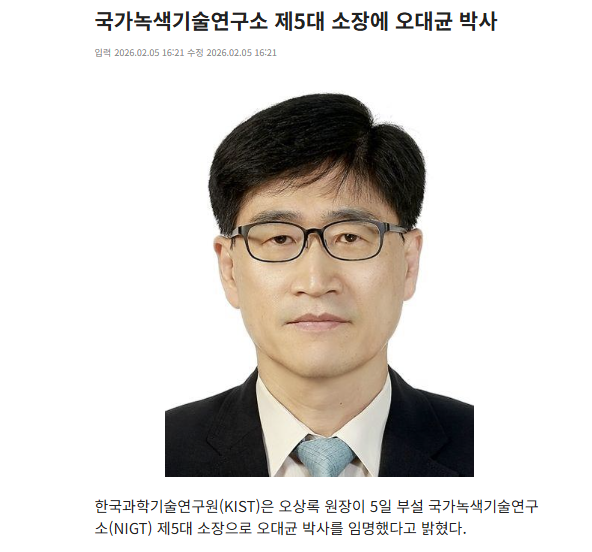오 소장은 "기술 공급자와 수요자, 사업자와 금융을 유기적으로 연계해 감축과 적응 분야에서 가시적인 성과를 창출하고, 부처별로 추진 중인 녹색기술 구현 역할을 집대성하는 허브로서 기능을 강화해 나가겠다"며 "출연연과의 적극적인 협업을 통해 연구 성과가 현장에서 활용되는 실질적인 기술 성과로 이어질 수 있는 플랫폼 역할을 충실히 수행하겠다"고 말했다.